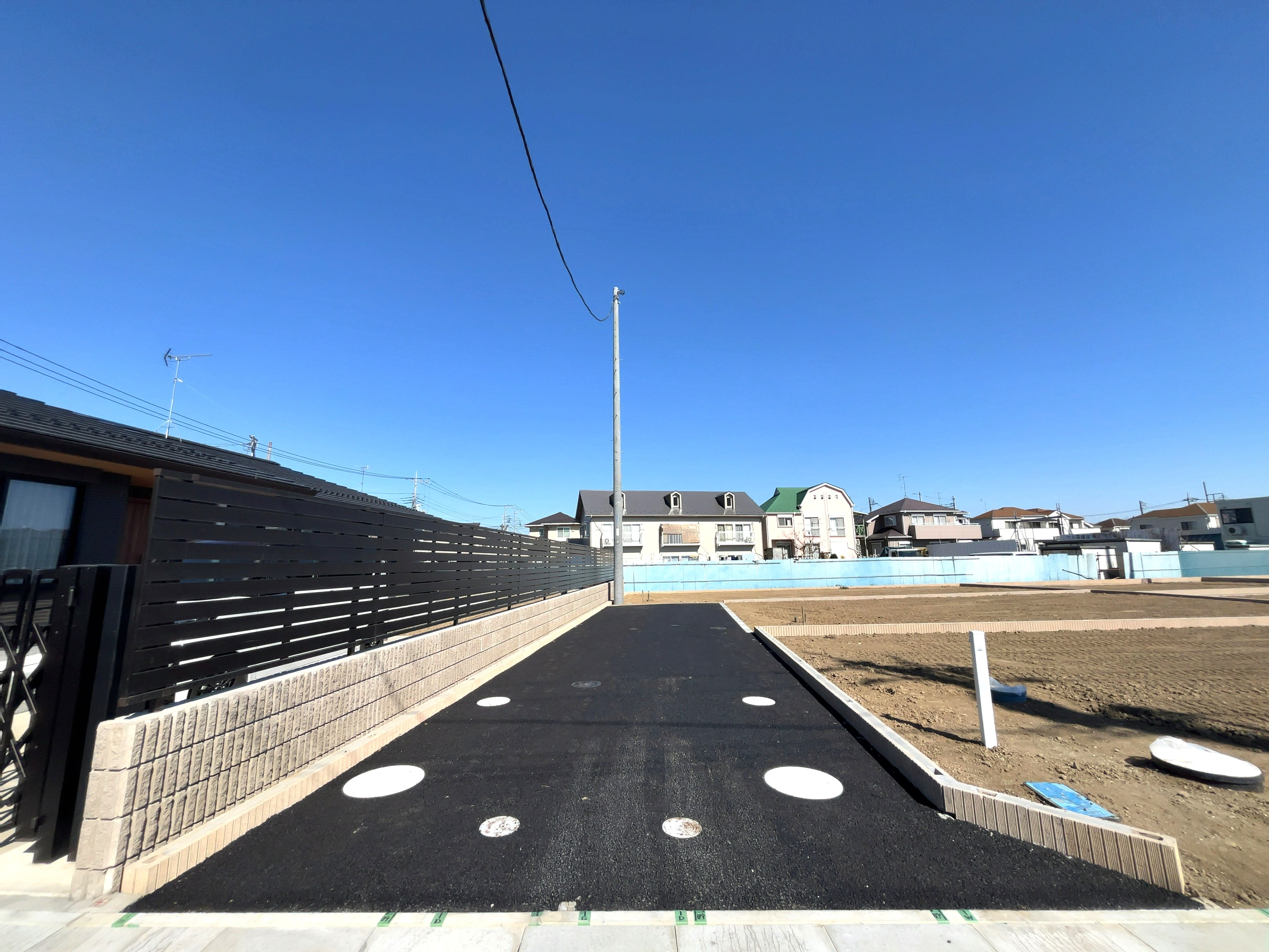 落ち着きのある片側だけの接道。
